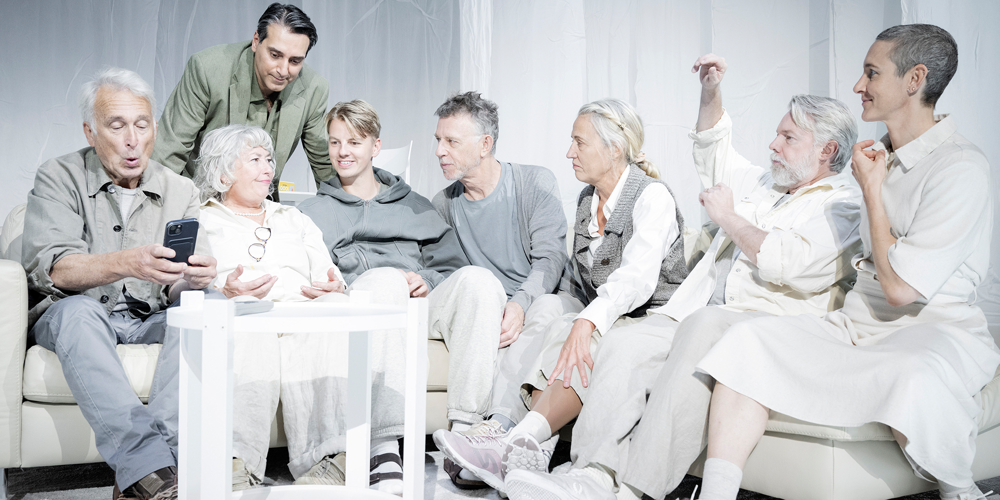 I ett rum utan slut rör sig en grupp människor. De talar med varandra, och om varandra. En är spärrvakt. En pratar om att köpa exklusiva kläder. En kommenterar vad folk lägger i kundkorgen på ICA. En tänker på sitt hus och vad som ska planteras. Någon kommer. Någon försvinner. Minnen blir fysiskt påtagliga här och nu.