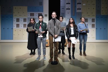 Från vänster: Sharzad Rahmani Eleftheria Gerofoka, Adel Darwish, Rasmus Lindgren, Bakri Wazzan och Anna Harling Photo: Ellika Henrikson