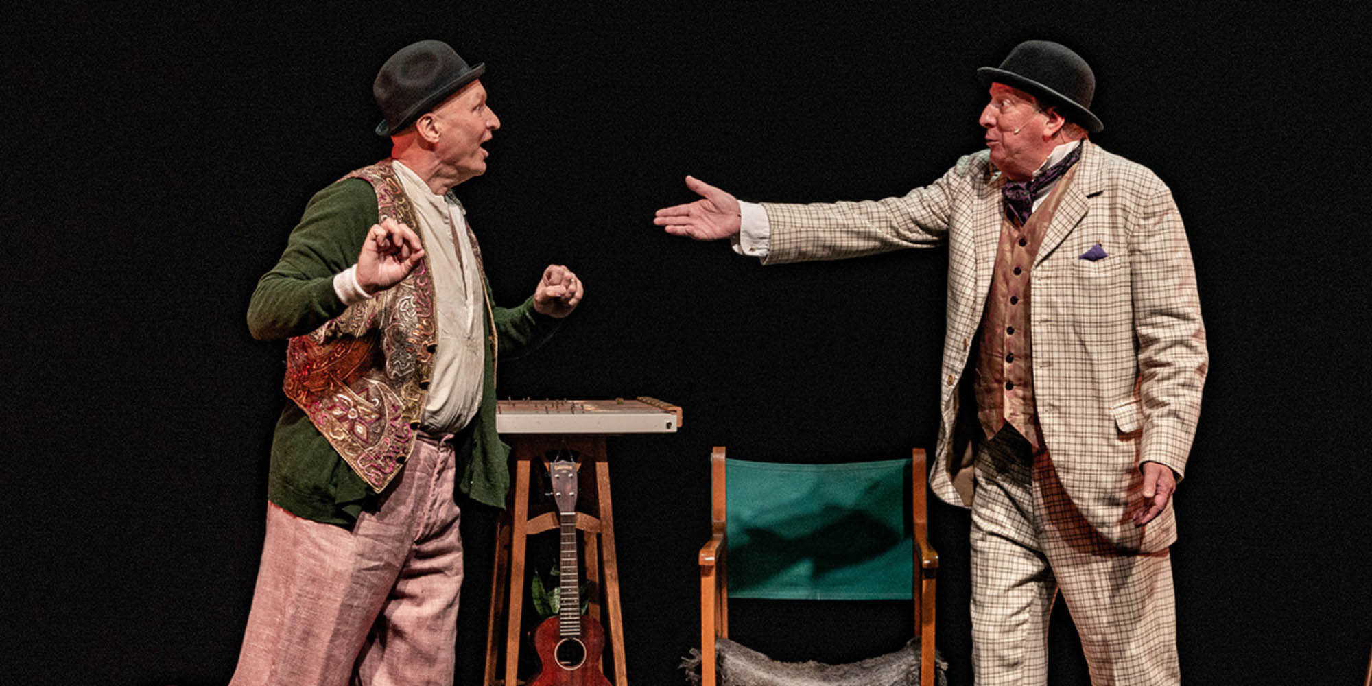 Två skådespelare, en kunglig aktör och en före detta kommunal aktör har tänkt sig spela Lång dags färd mot natt. Men avbrott, stickspår och hinder kommer i deras väg. Hinder som forceras med sång som ackompanjeras av instrument som cittra, ukulele, synt och omnichord. En pjäs om status, symbios och vänskap. Som den mellan Helan och Halvan, Estragon och Vladimir eller mellan två små killar där den ene vet allt och den andre är lycklig över att känna en som vet allt.